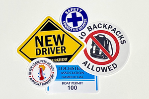 Our single stickers, permits, and signs are some of our most top-selling products! Labels are printed with either environmentally-friendly Eco Solvent ink or UV ink to protect from fading. Get single labels with unsurpassed image quality!